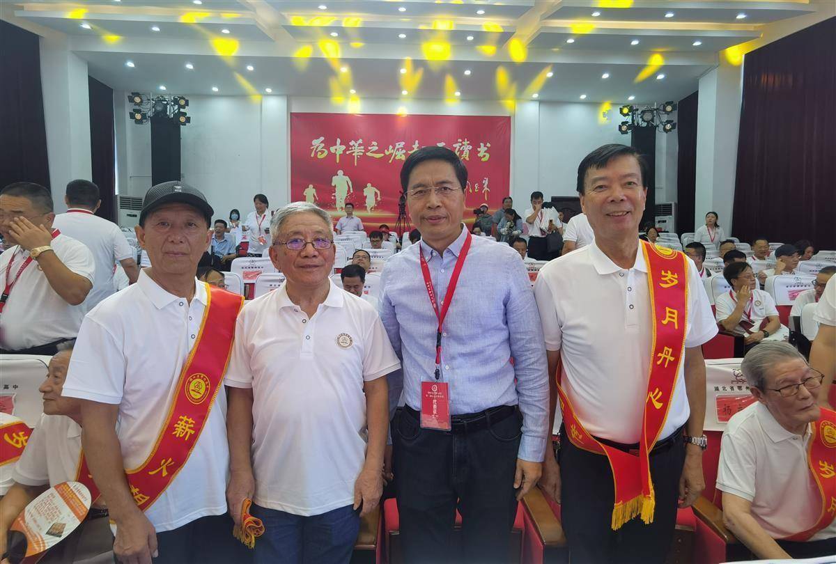 朱松纯回母校鄂州高中与曾经的授课老师合影。(湖北日报全媒记者周三春 摄)
